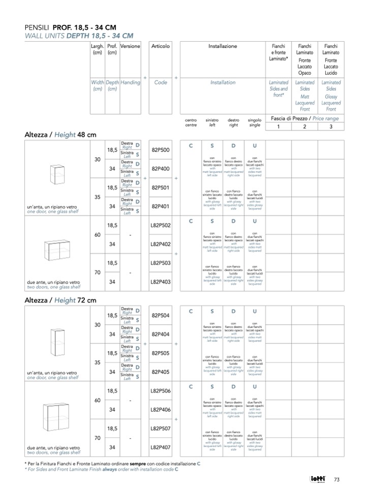 * Per la Finitura Fianchi e Fronte Laminato ordinare sempre con codice installazione C