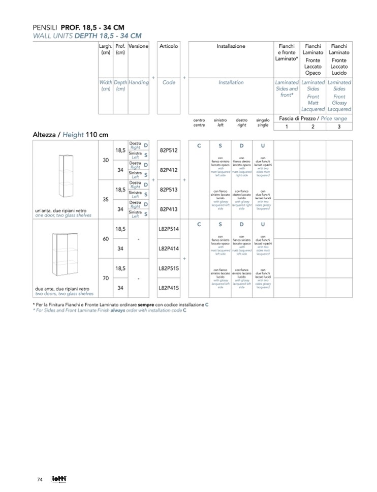 * Per la Finitura Fianchi e Fronte Laminato ordinare sempre con codice installazione C
