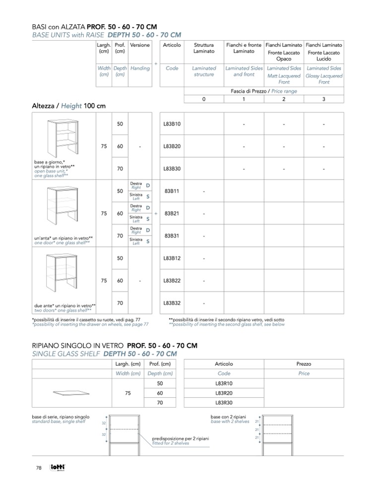 **possibilità di inserire il secondo ripiano vetro, vedi sotto