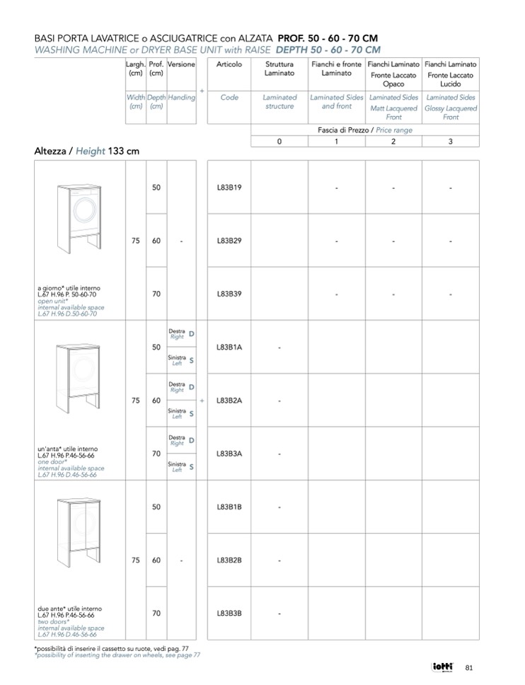 *possibilità di inserire il cassetto su ruote, vedi pag. 77