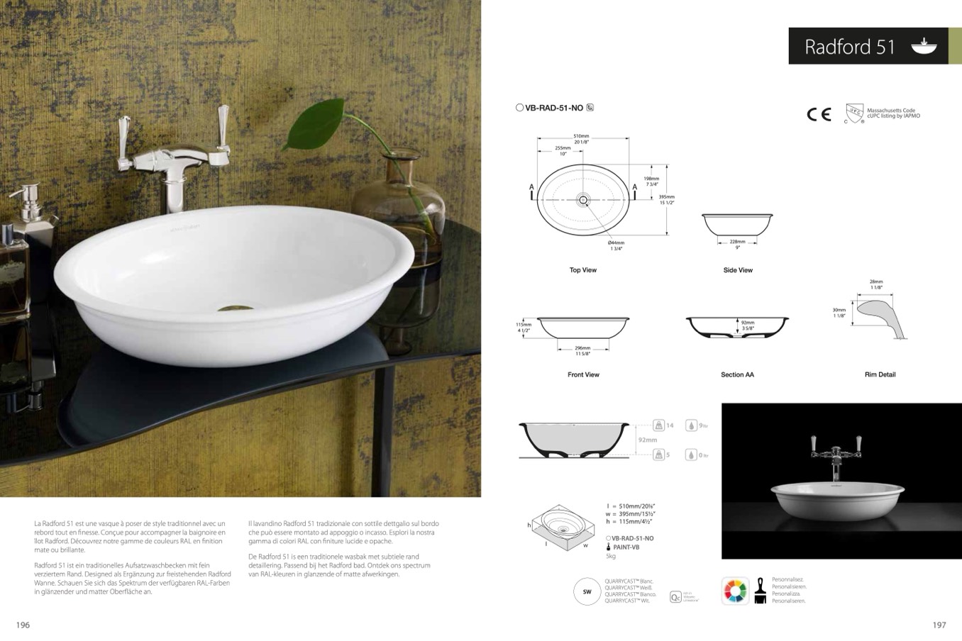De Radford 51 is een traditionele wasbak met subtiele rand