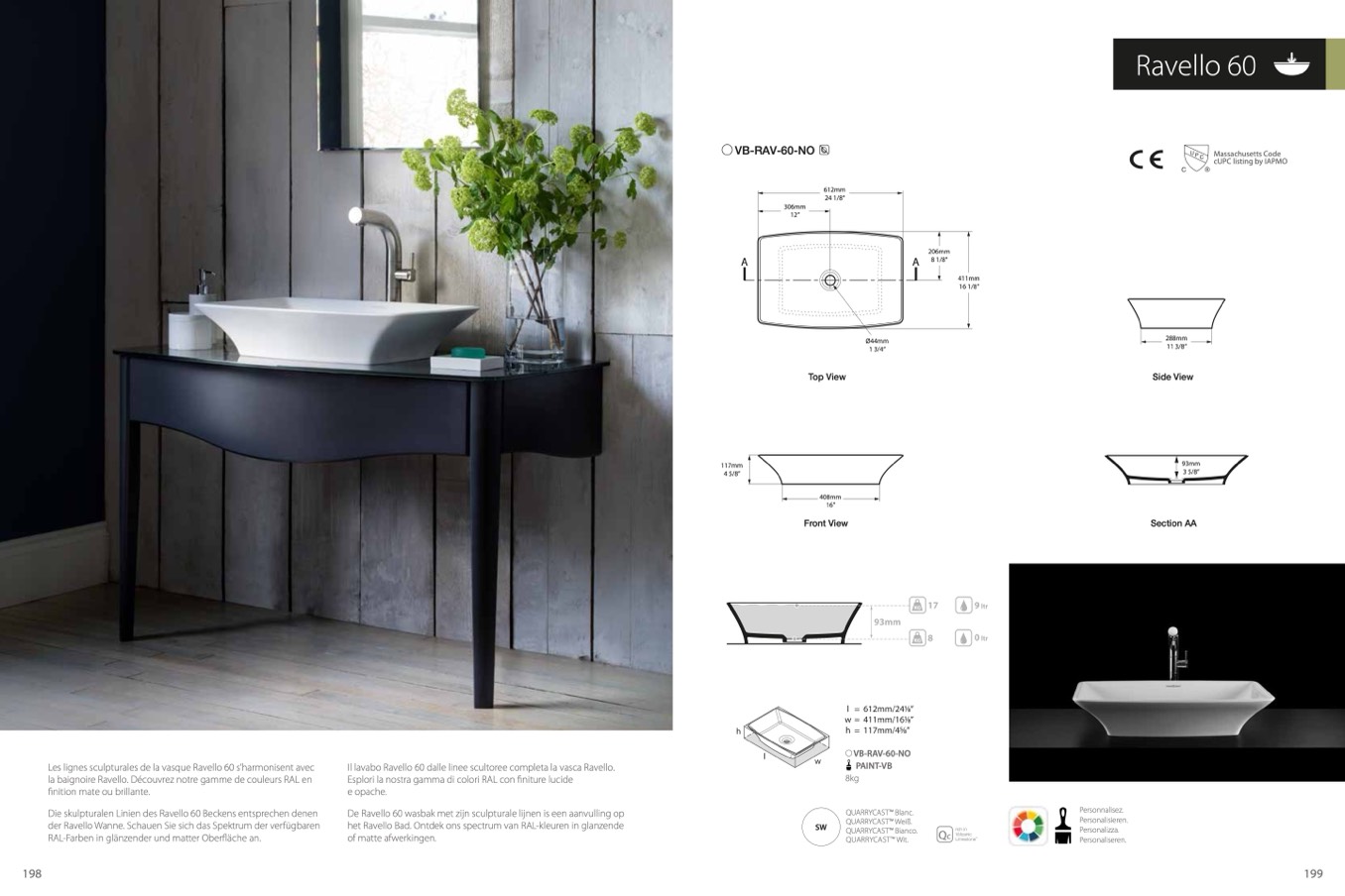 la baignoire Ravello. Découvrez notre gamme de couleurs RAL en