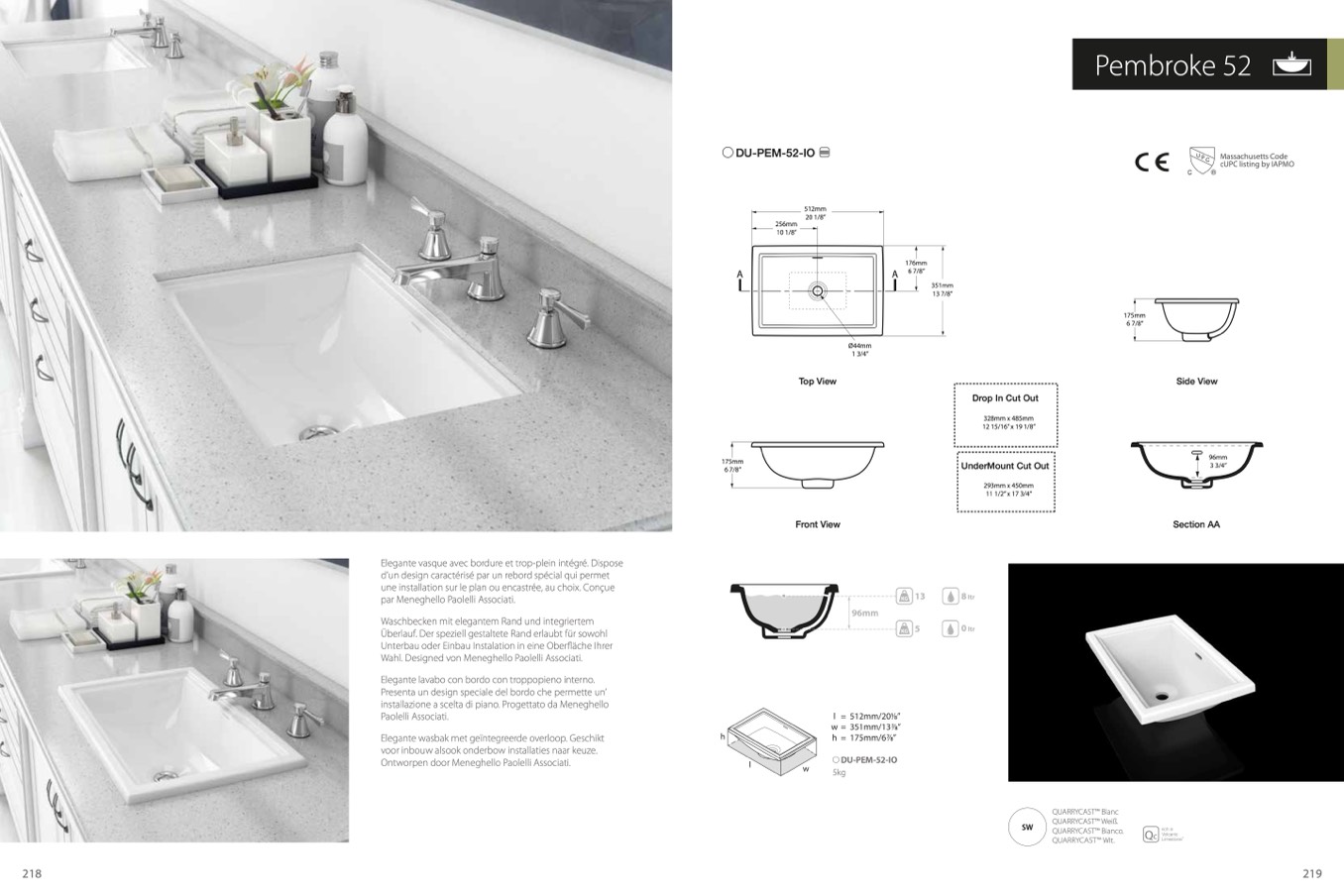 Elegante vasque avec bordure et trop-plein intégré. Dispose