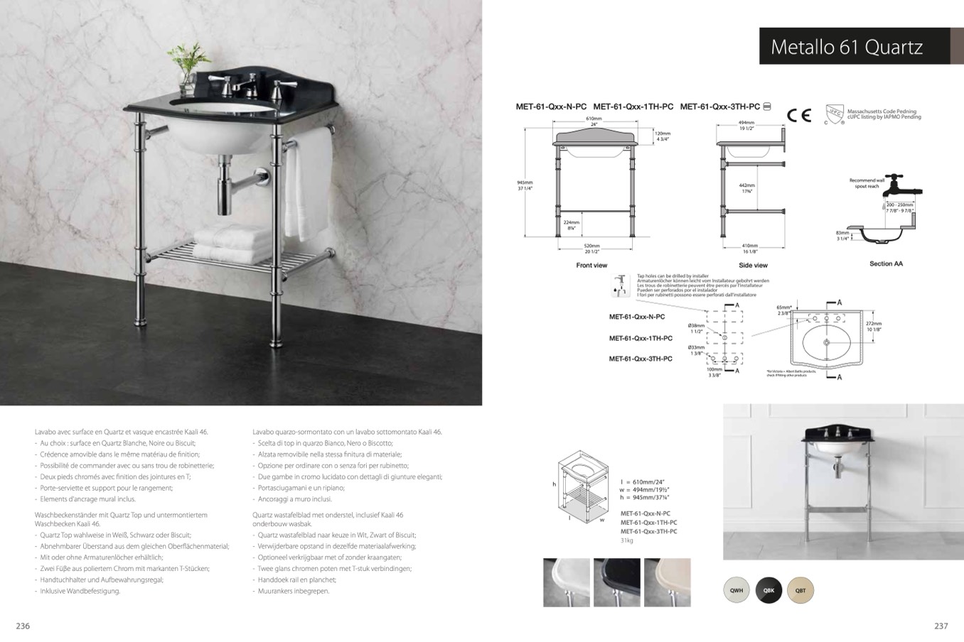 - Possibilité de commander avec ou sans trou de robinetterie;