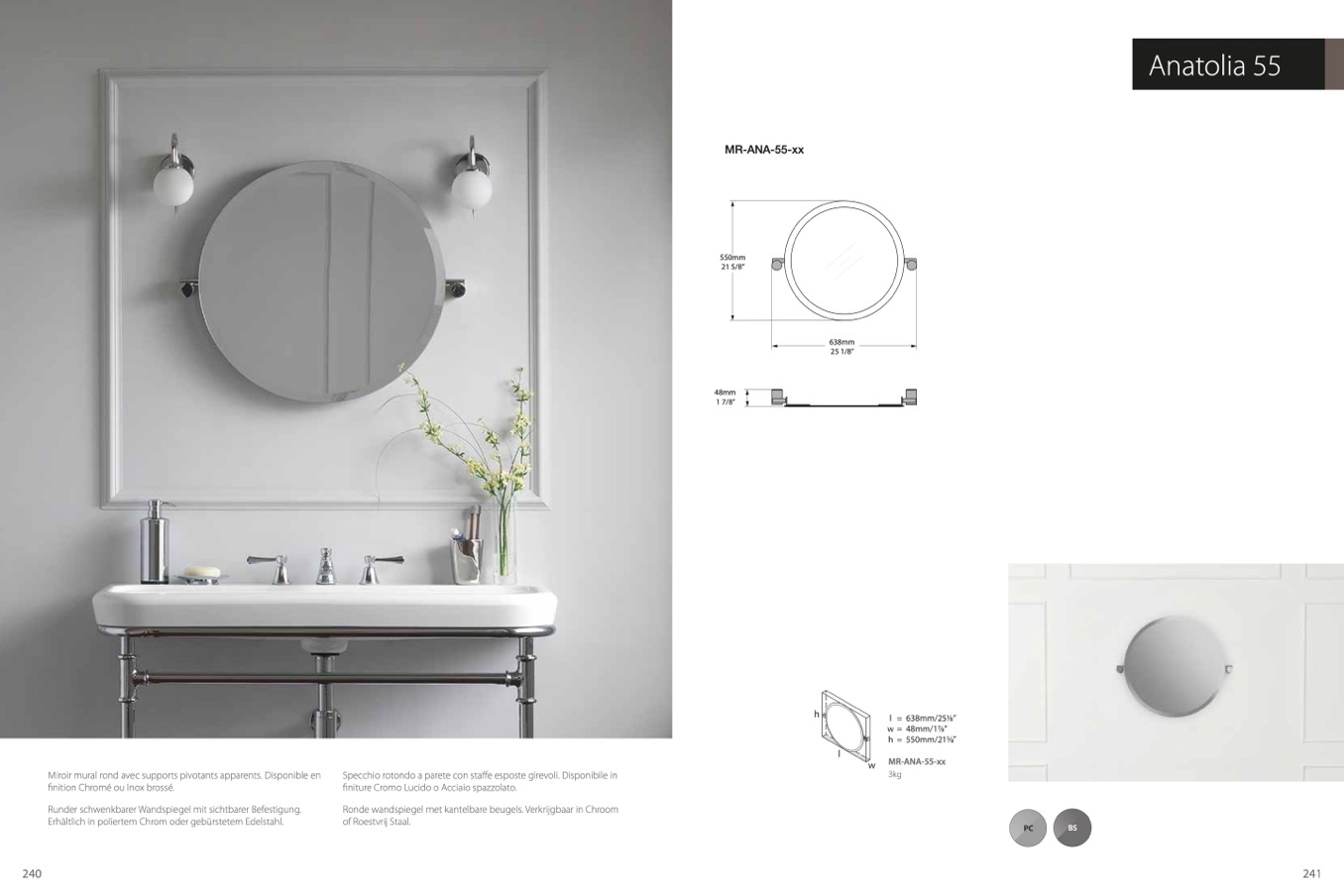 Ronde wandspiegel met kantelbare beugels. Verkrijgbaar in Chroom