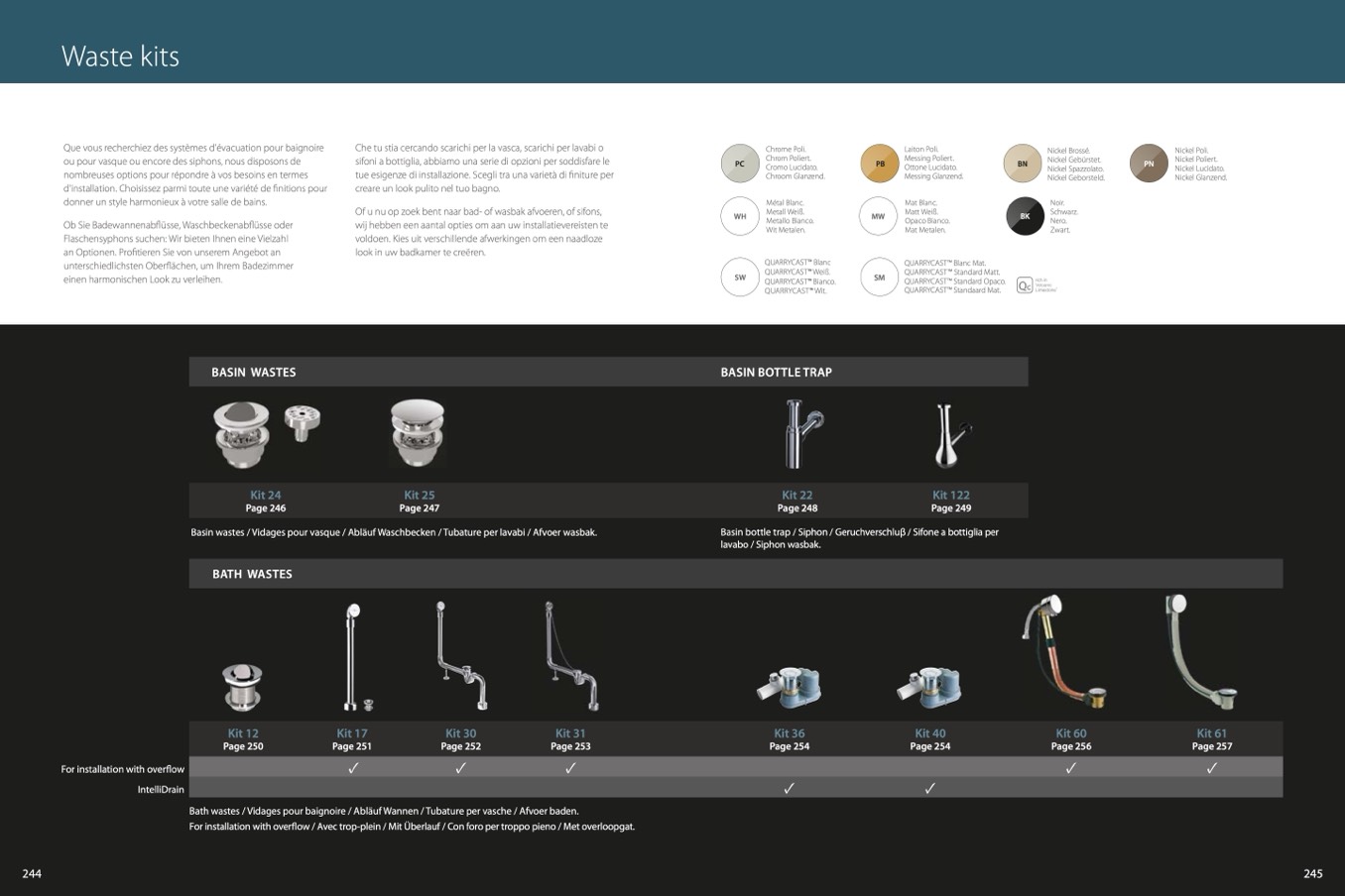 Bath wastes / Vidages pour baignoire / Abläuf Wannen / Tubature per vasche / Afvoer baden.