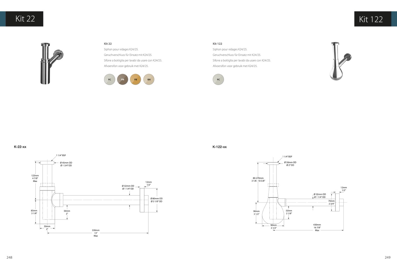 Sifone a bottiglia per lavabi da usare con K24/25.