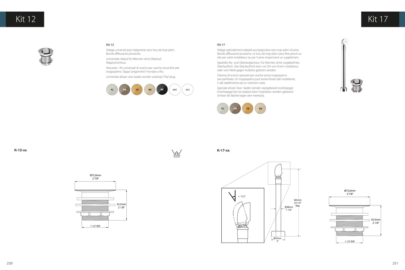 Spezielle Ab- und Überlaufgarnitur. Für Wannen ohne vorgebohrtes
