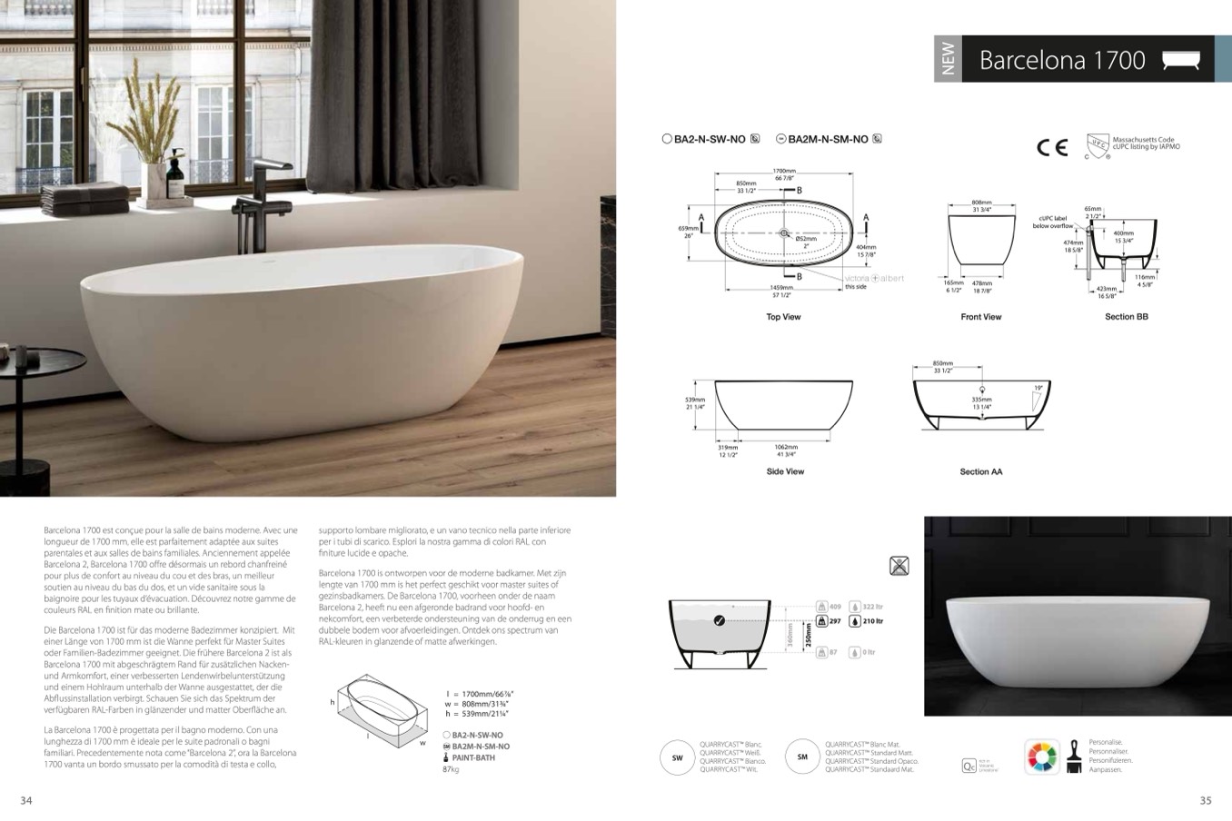 Barcelona 1700 est conçue pour la salle de bains moderne. Avec une