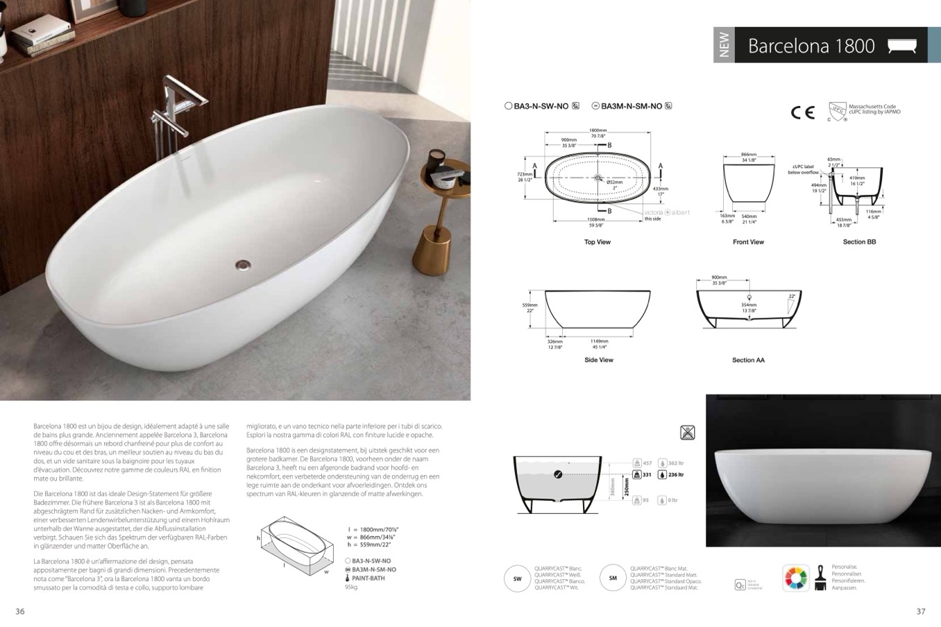 Barcelona 3, heeft nu een afgeronde badrand voor hoofd- en