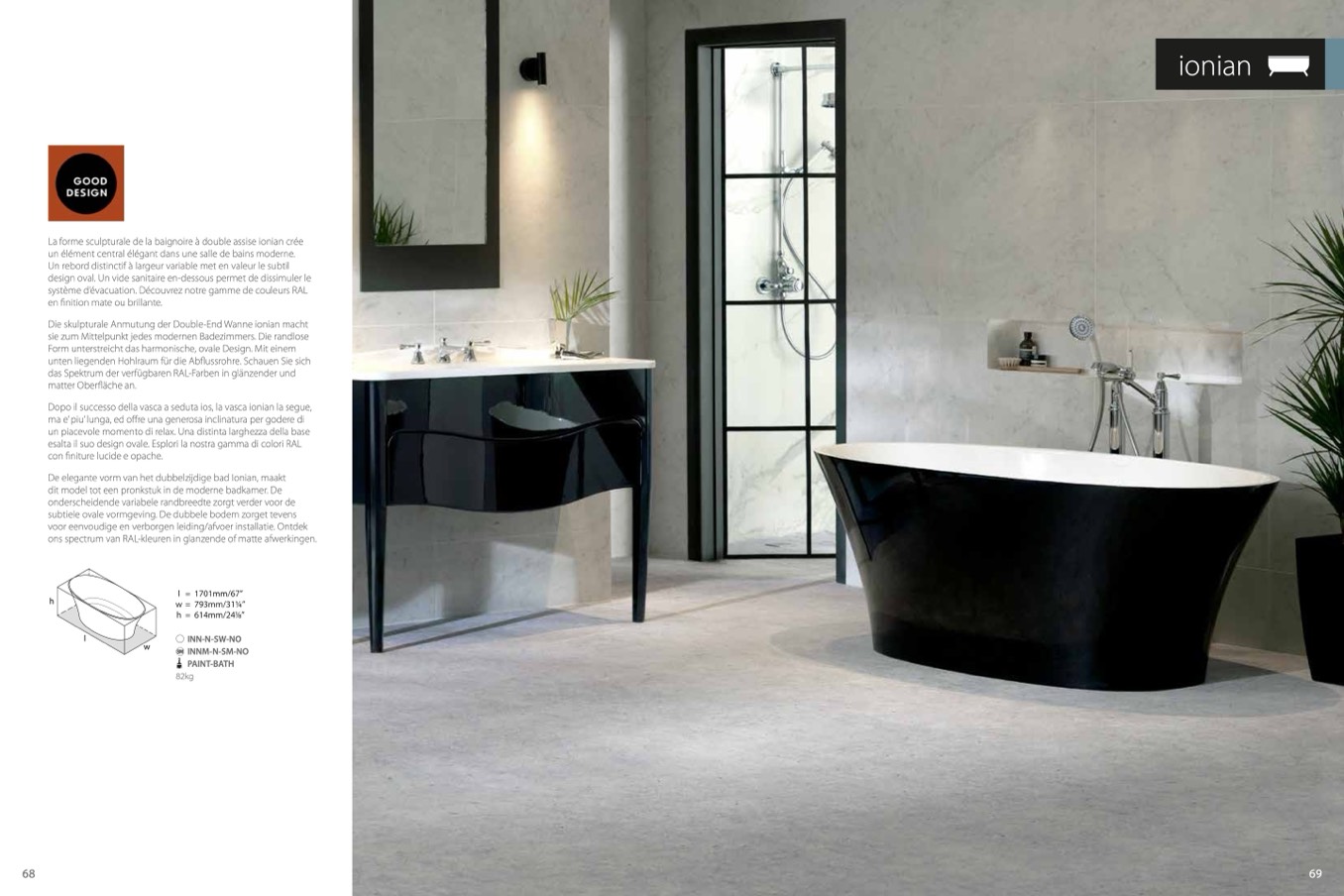 La forme sculpturale de la baignoire à double assise ionian crée