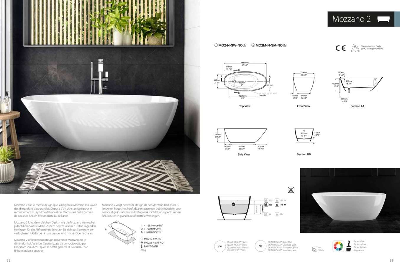 Mozzano 2 suit le même design que la baignoire Mozzano mais avec