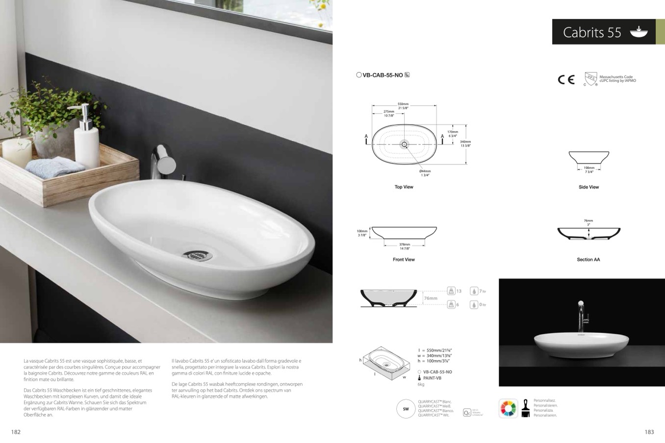 Das Cabrits 55 Waschbecken ist ein tief geschnittenes, elegantes