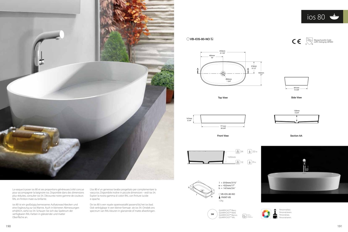 ios 80 ist ein großzügig bemessenes Aufsatzwaschbecken und