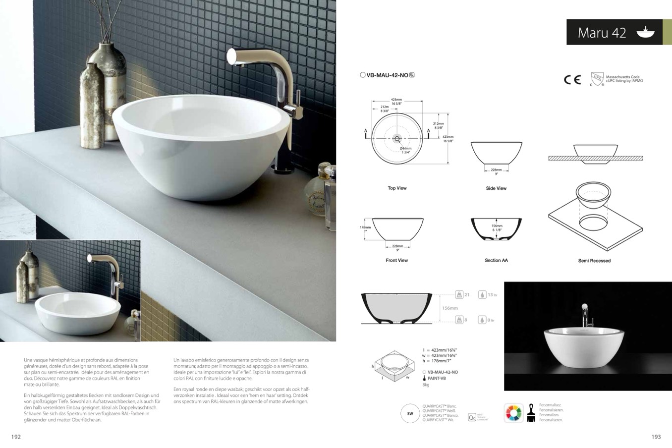 den halb versenkten Einbau geeignet. Ideal als Doppelwaschtisch.