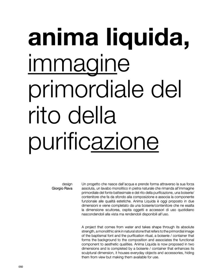 funzionale alle qualità estetiche. Anima Liquida è oggi proposto in due