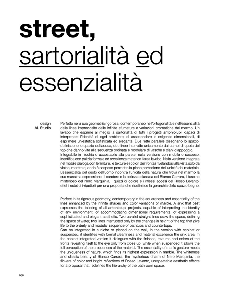 expresses the tailoring of all antoniolupi projects, capable of interpreting the identity