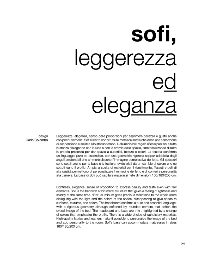 elements. Sofi is the bed with a thin metal structure that gives a feeling of lightness and