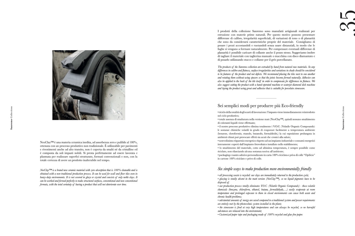 NeoClay™️ è una materia ceramica inedita, ad assorbenza zero e pulibile al 100%,