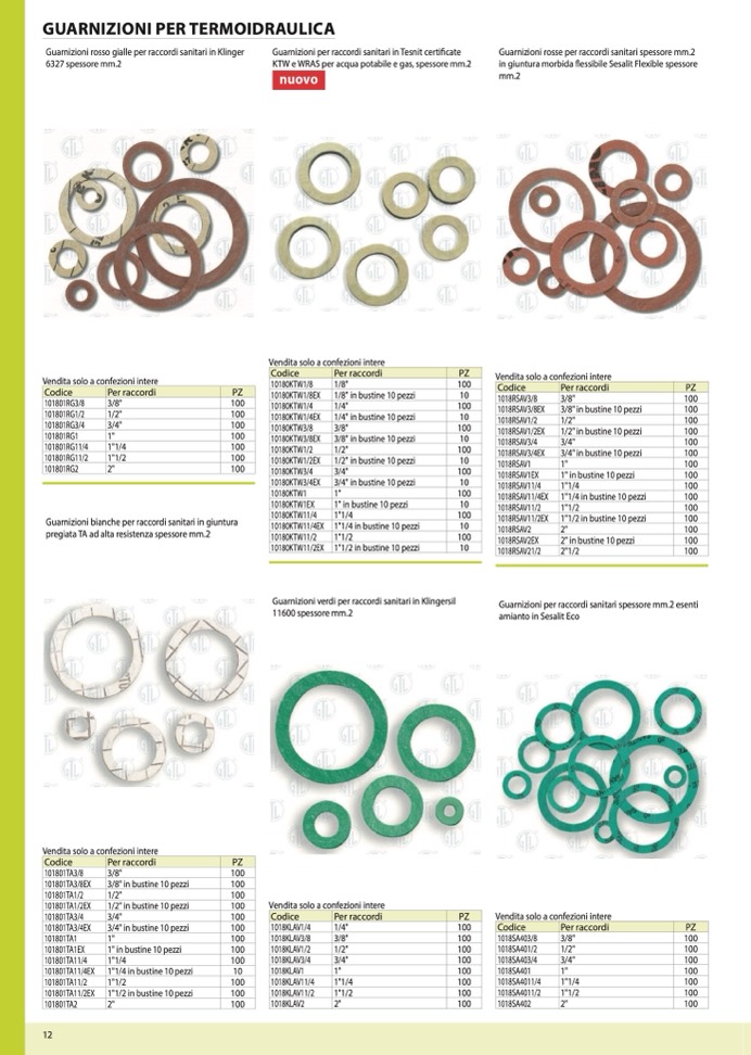 Guarnizioni per raccordi sanitari spessore mm.2 esenti