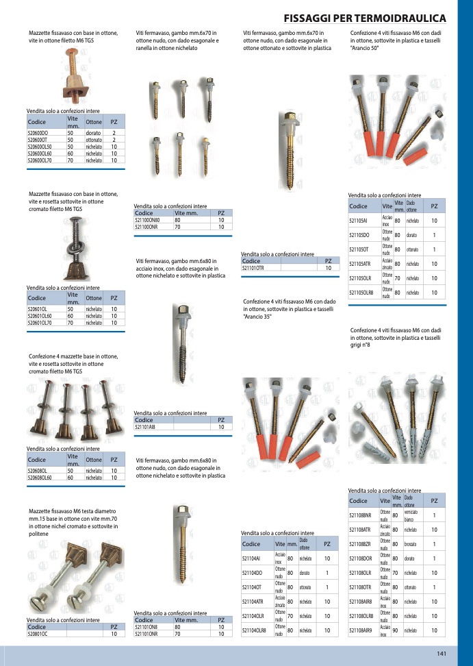 in ottone, sottovite in plastica e tasselli