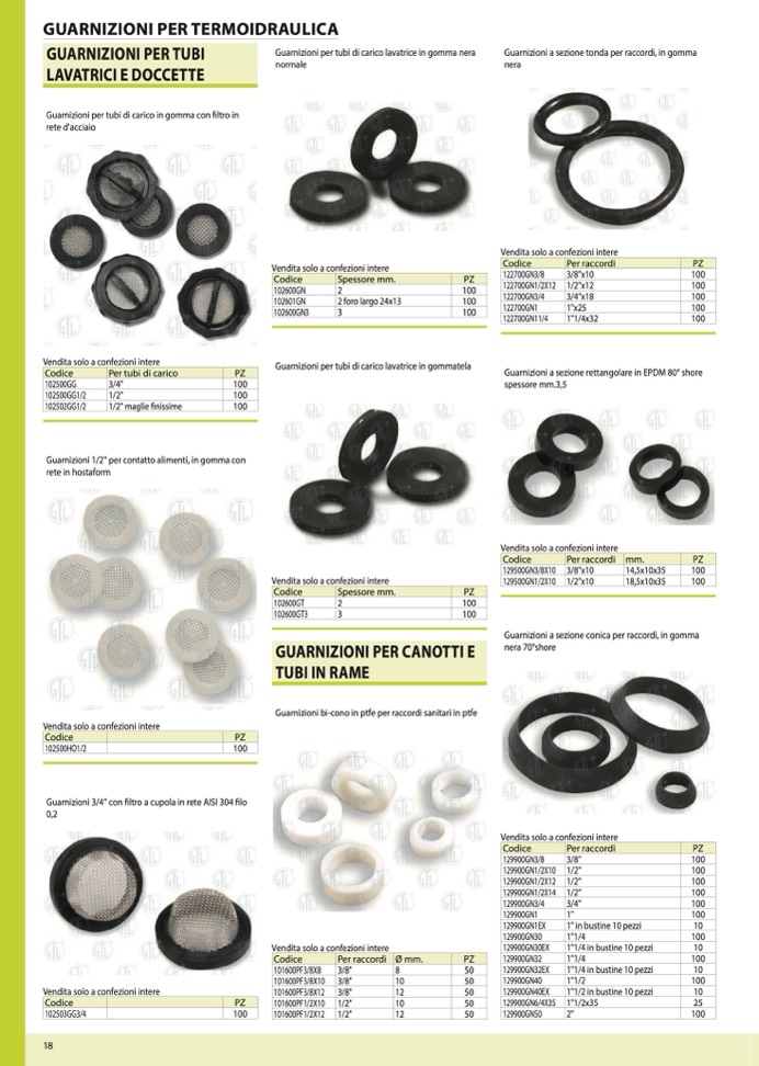 Guarnizioni per tubi di carico lavatrice in gommatela