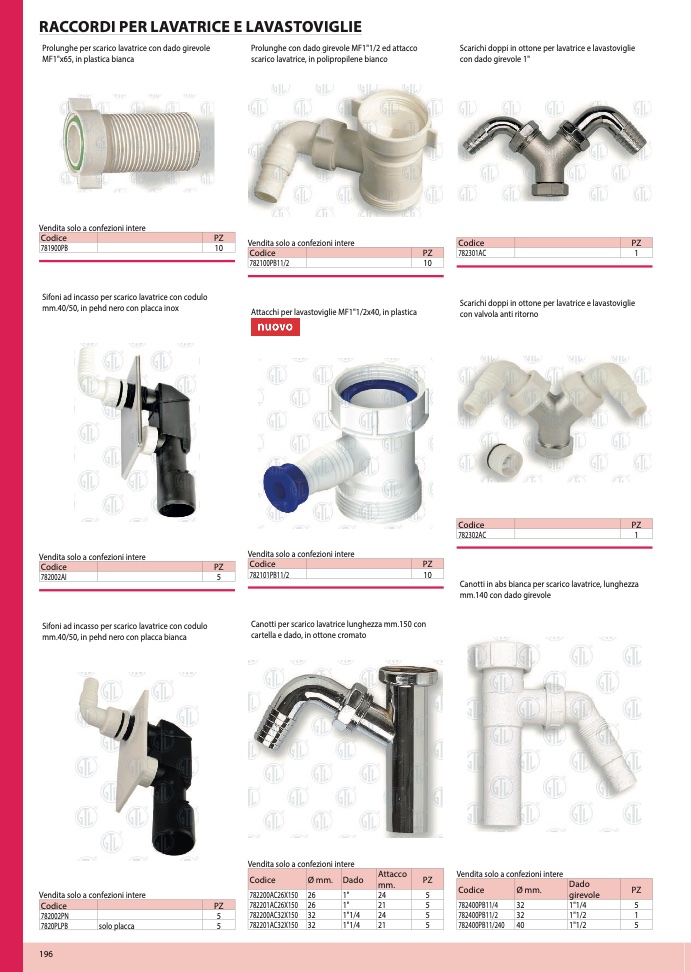 Scarichi doppi in ottone per lavatrice e lavastoviglie
