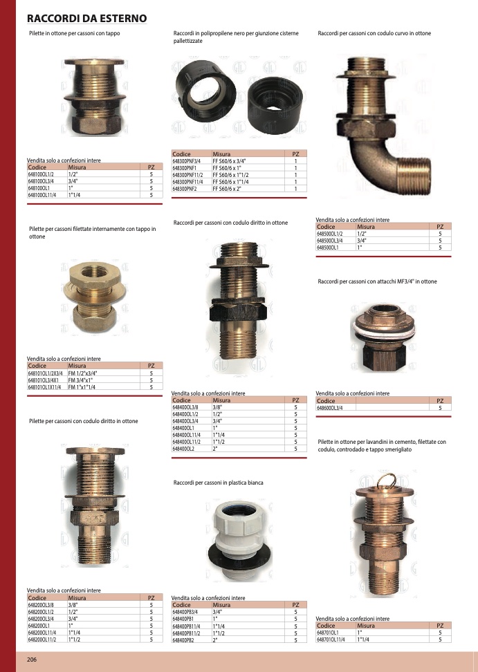 Raccordi per cassoni con codulo diritto in ottone
