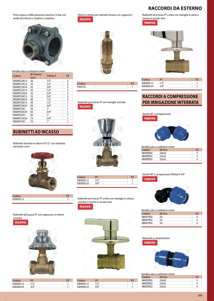 Rubinetti ad incasso FF con cappuccio, in ottone