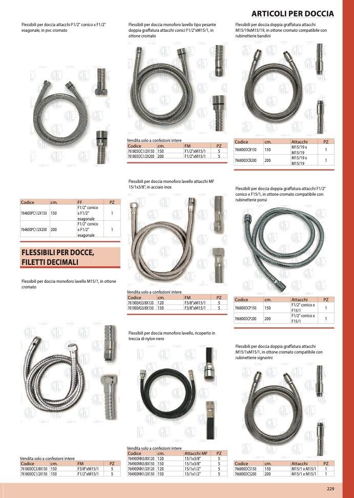 Flessibili per doccia attacchi F1/2" conico x F1/2"