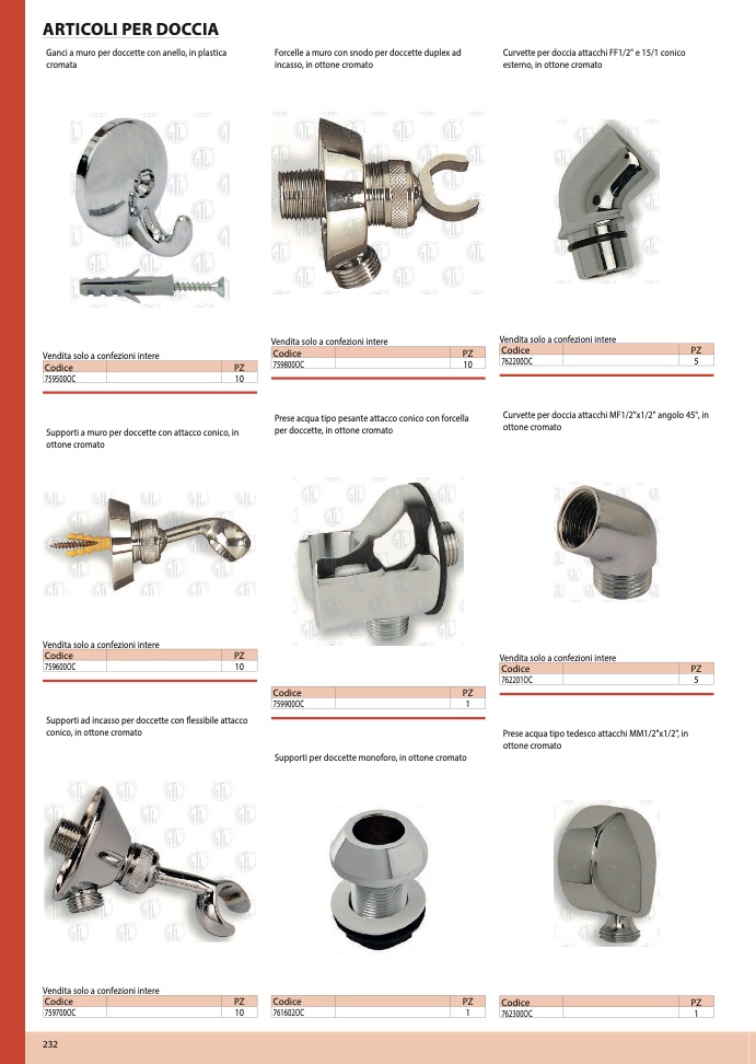 Curvette per doccia attacchi FF1/2" e 15/1 conico