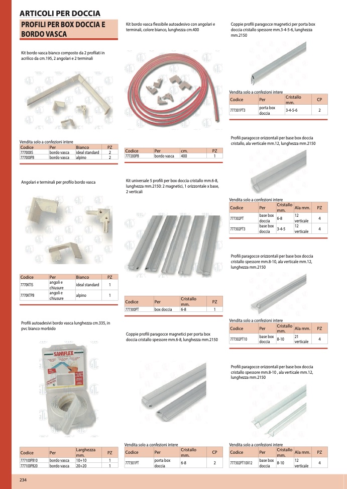 Profili paragocce orizzontali per base box doccia