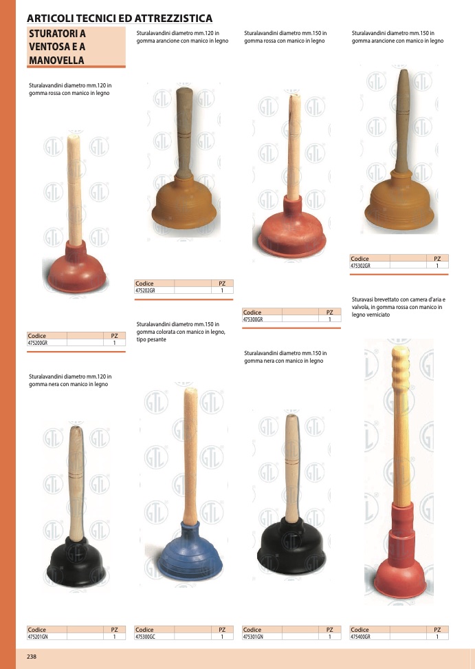 gomma nera con manico in legno