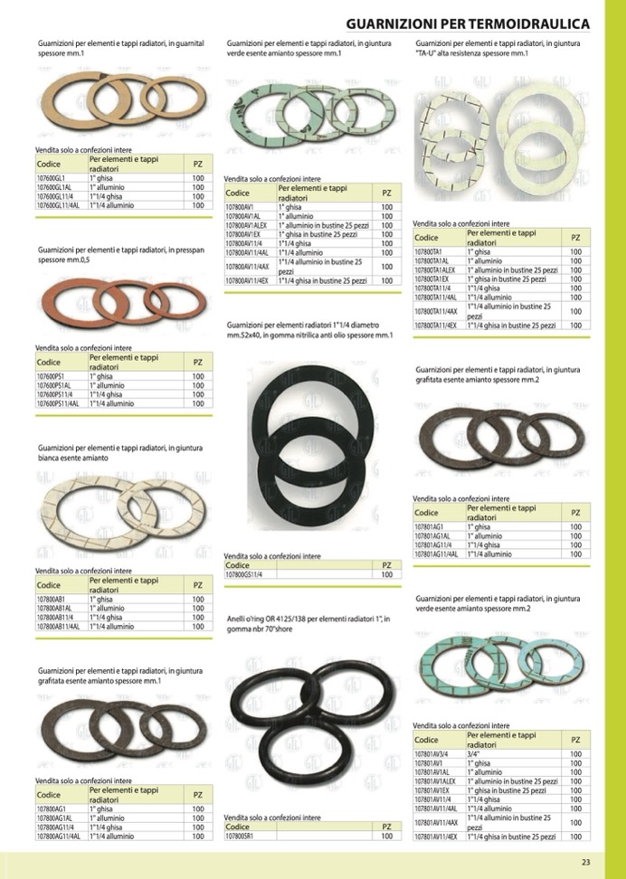 Guarnizioni per elementi e tappi radiatori, in guarnital
