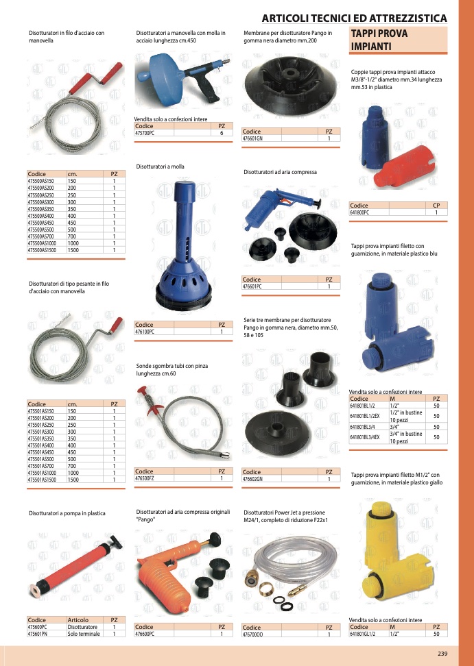 Sonde sgombra tubi con pinza