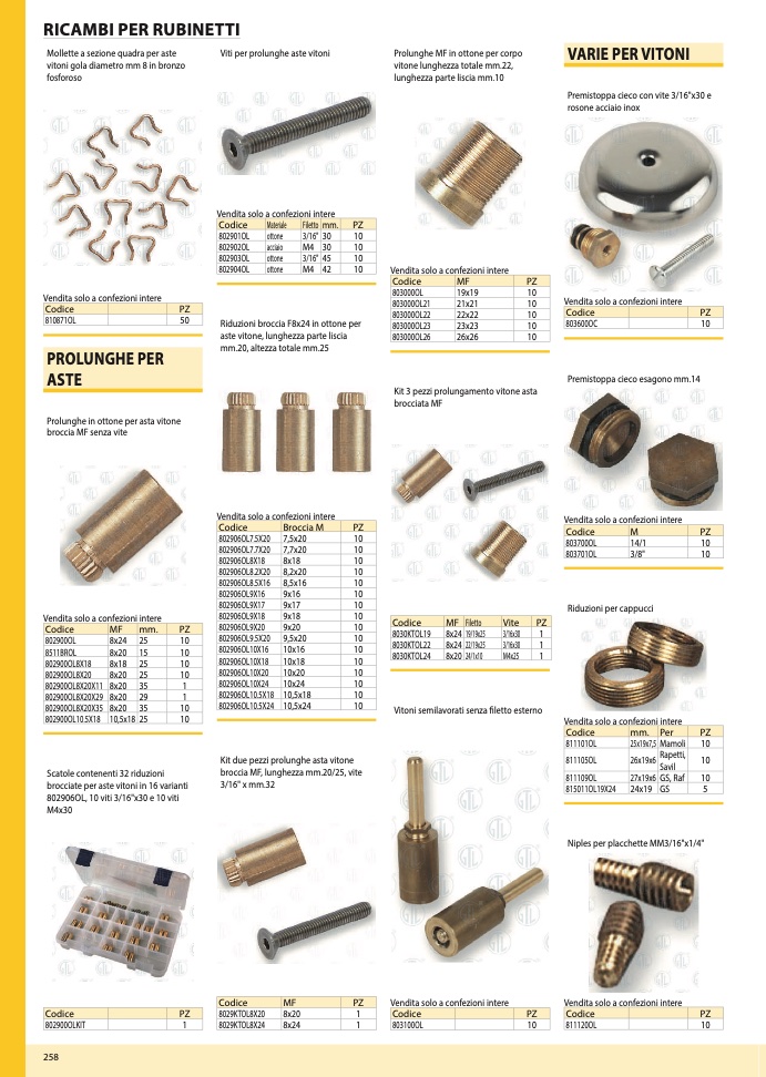 Prolunghe in ottone per asta vitone