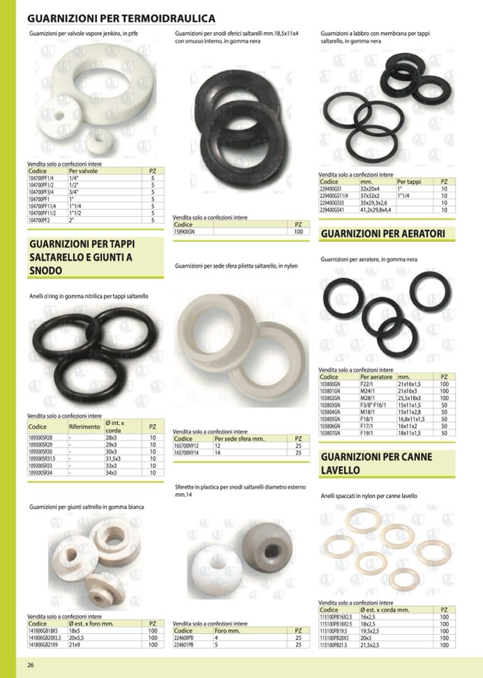 Guarnizioni per sede sfera piletta saltarello, in nylon
