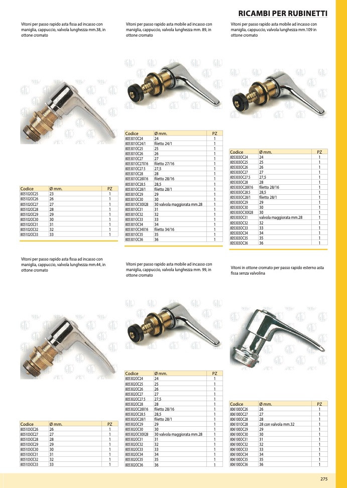 maniglia, cappuccio, valvola lunghezza mm. 99, in