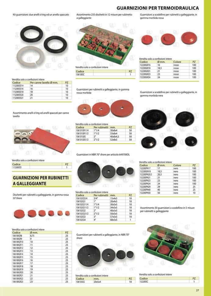 Guarnizioni per rubinetti a galleggiante, in gomma