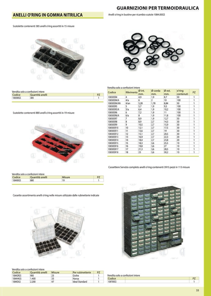 Anelli o'ring in bustine per ricambio scatole 1084.00GS