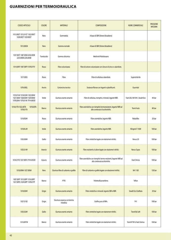 Fibre aramidiche con riempitivi termo-resistenti, legante NBR ad