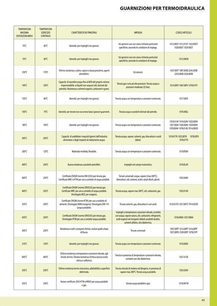 Tenuta acqua, vapore max 200°C, olii, carburanti, gas.