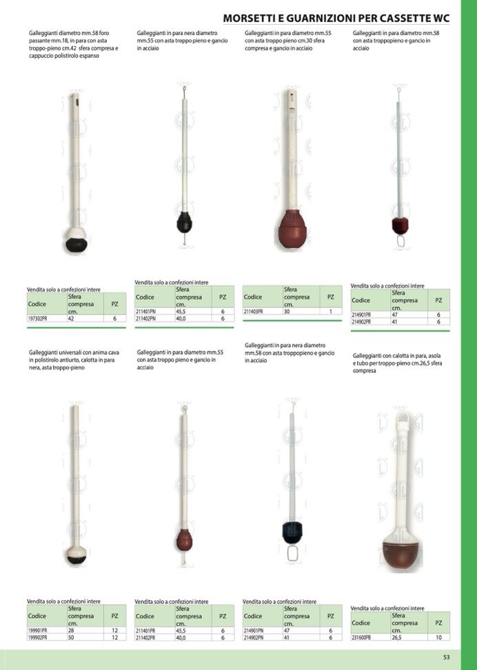 Galleggianti diametro mm.58 foro