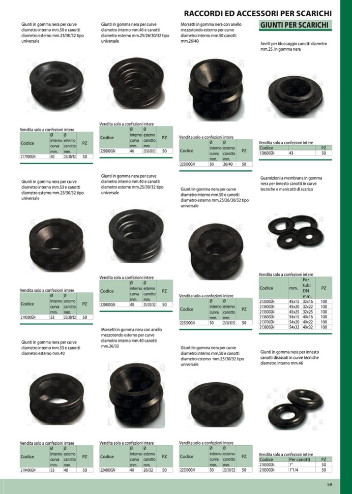 Giunti in gomma nera per innesto