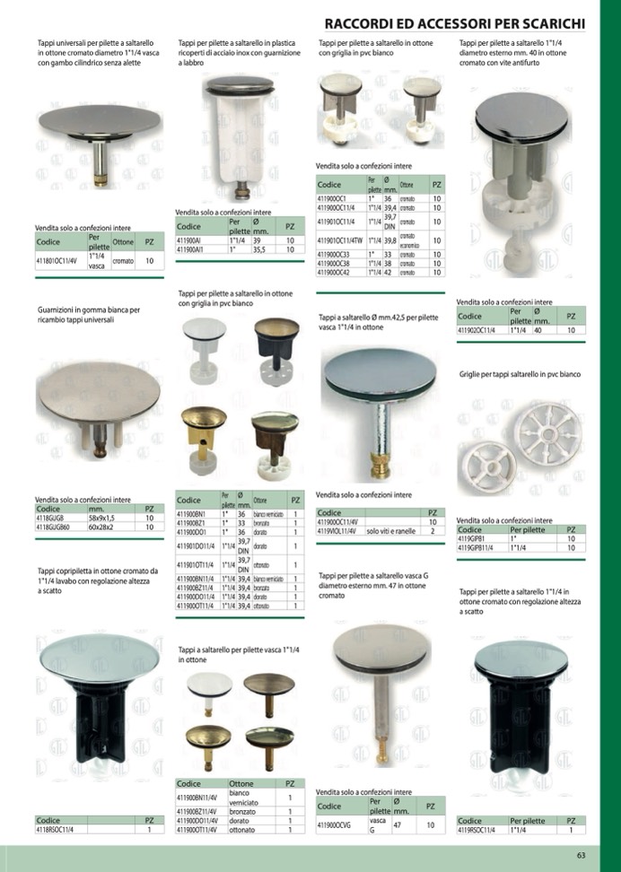Tappi per pilette a saltarello 1"1/4