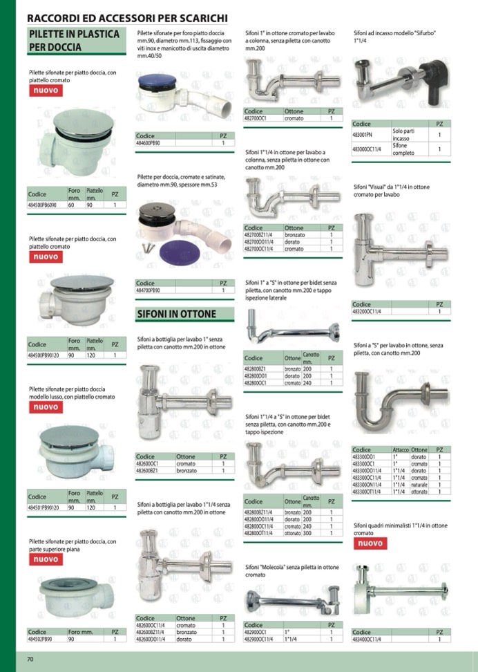 Sifoni a bottiglia per lavabo 1"1/4 senza