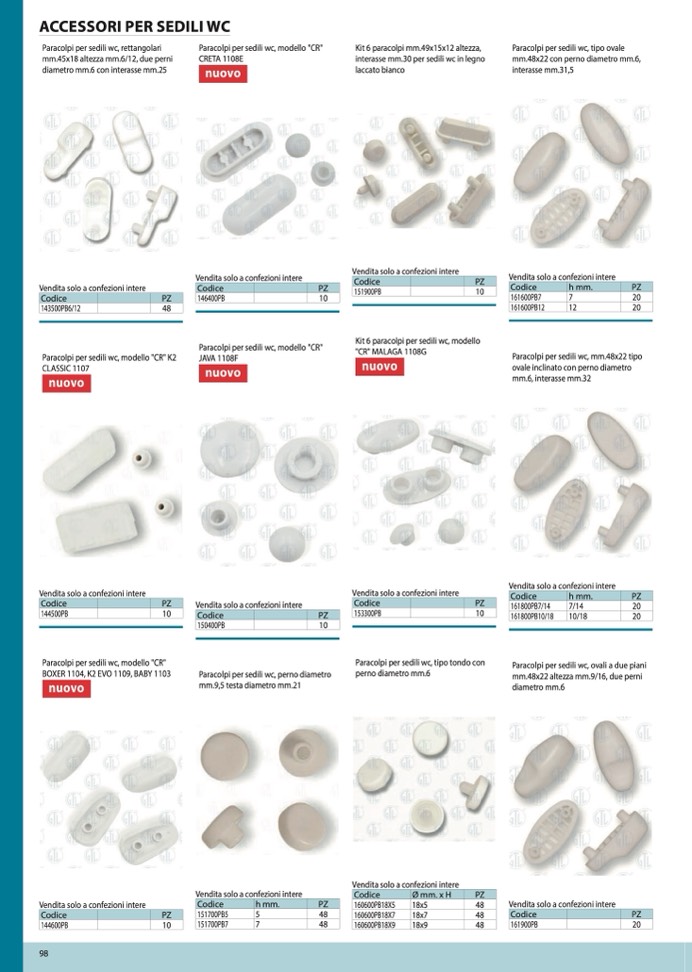 Paracolpi per sedili wc, modello "CR"