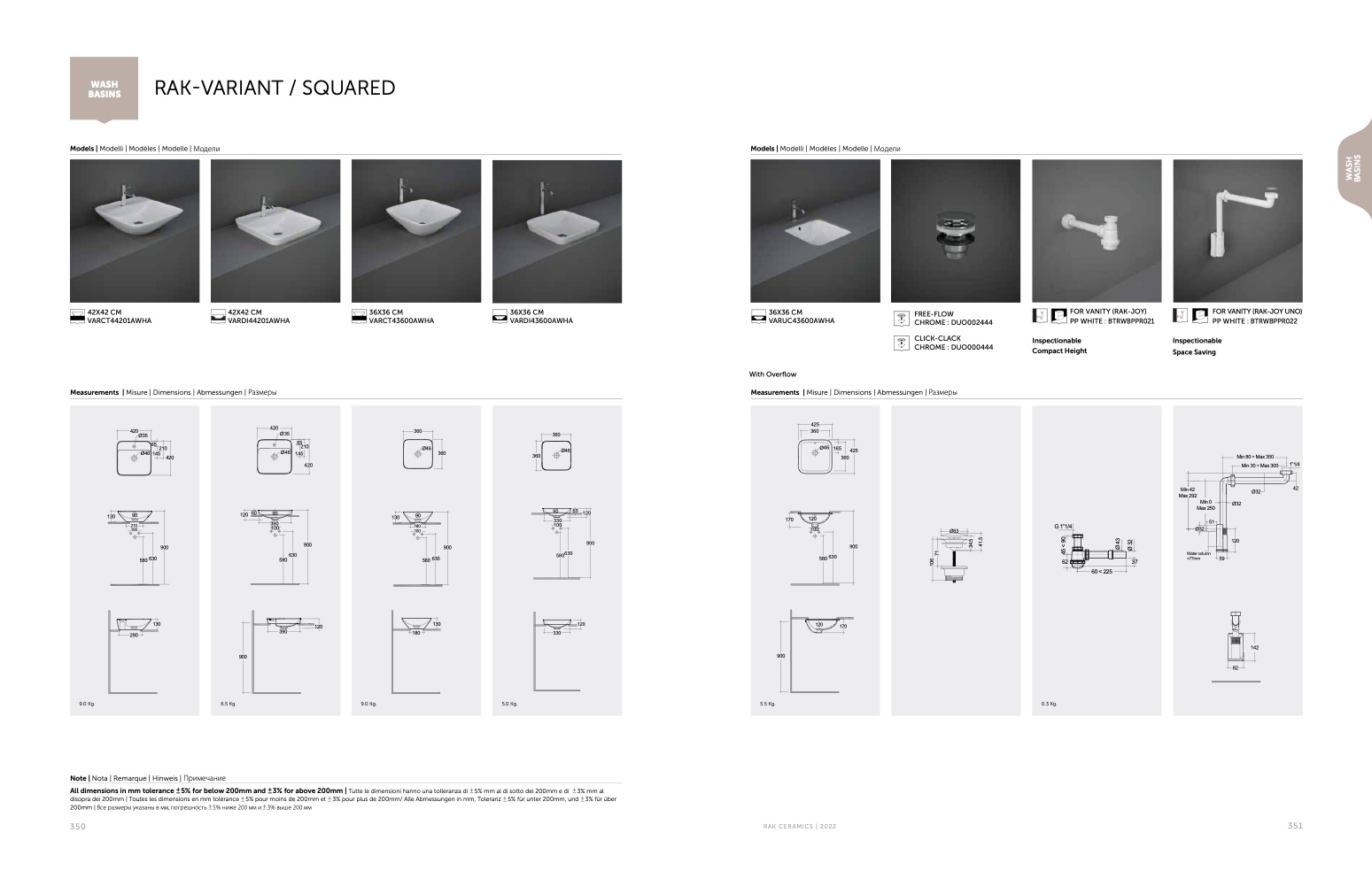 disopra dei 200mm | Toutes les dimensions en mm tolérance 5% pour moins de 200mm et 3% pour plus de 200mm/ Alle Abmessungen in mm, Toleranz