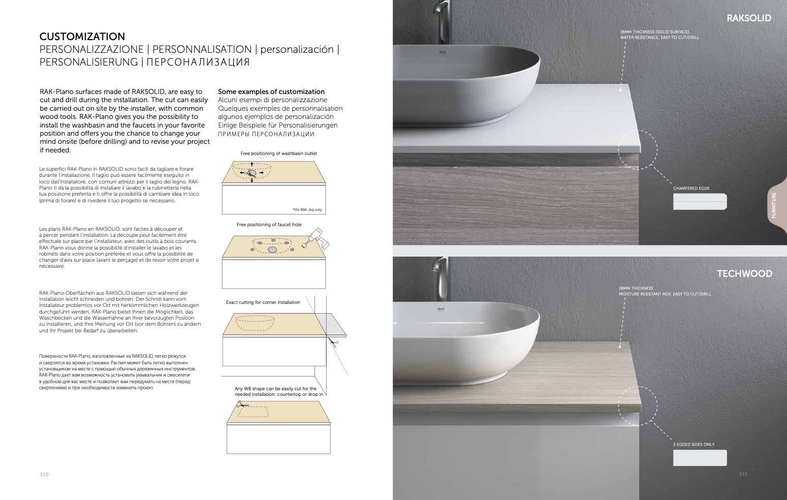 Le superfici RAK-Plano in RAKSOLID sono facili da tagliare e forare