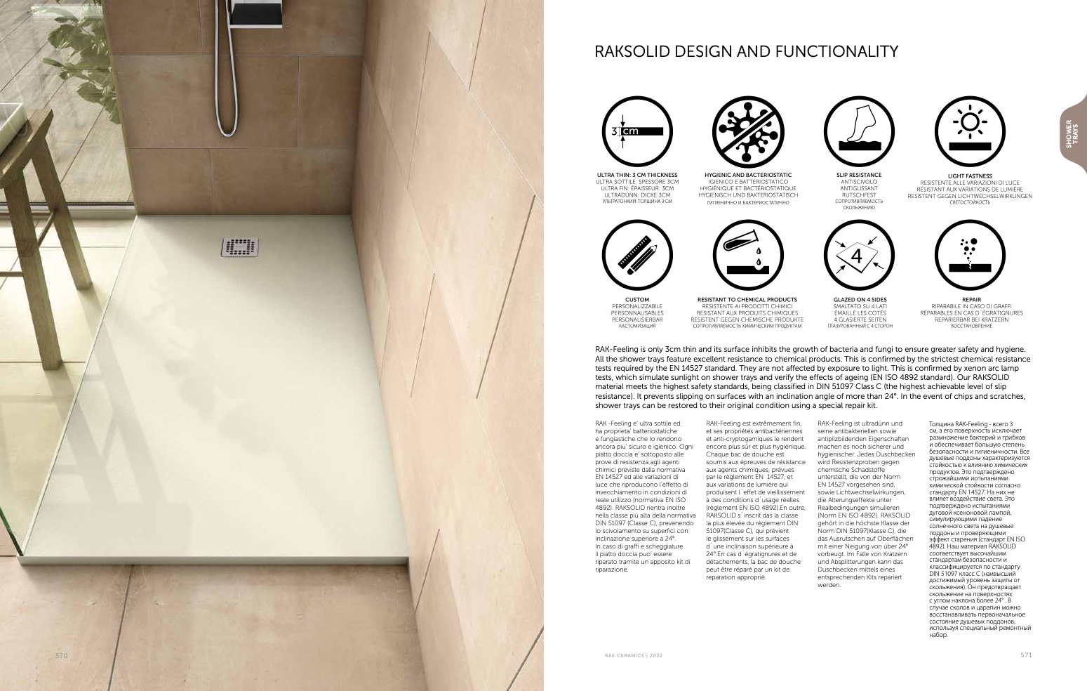 tests, which simulate sunlight on shower trays and verify the effects of ageing (EN ISO 4892 standard). Our RAKSOLID